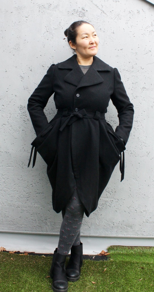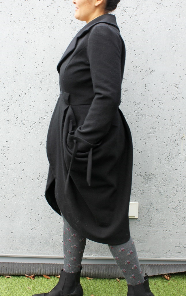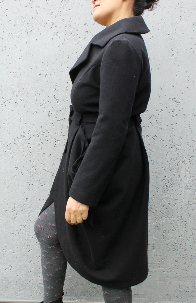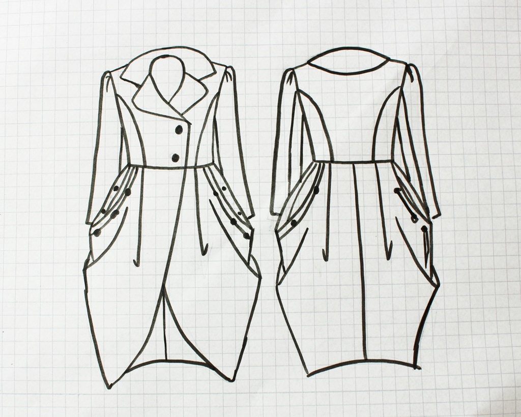 Schnittmuster für langen Mantel mit tulpenformigen Rockteil