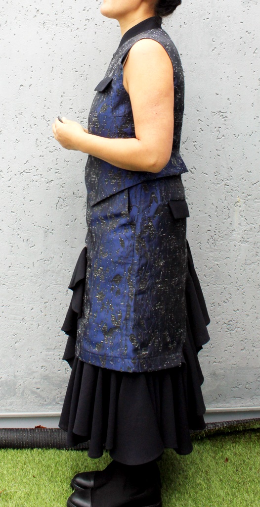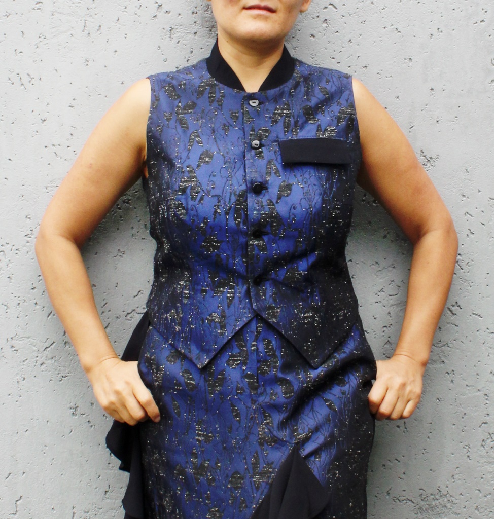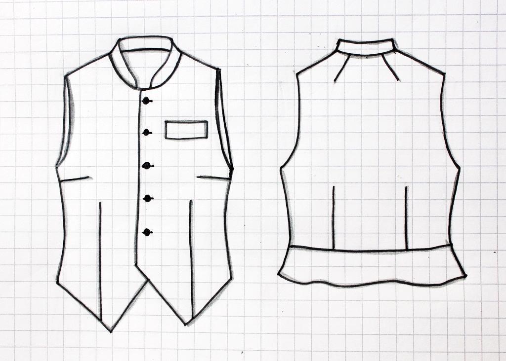 Körperbetonte Weste mit klassischen Spitzen am Vorderteil und kleinen Kragen.